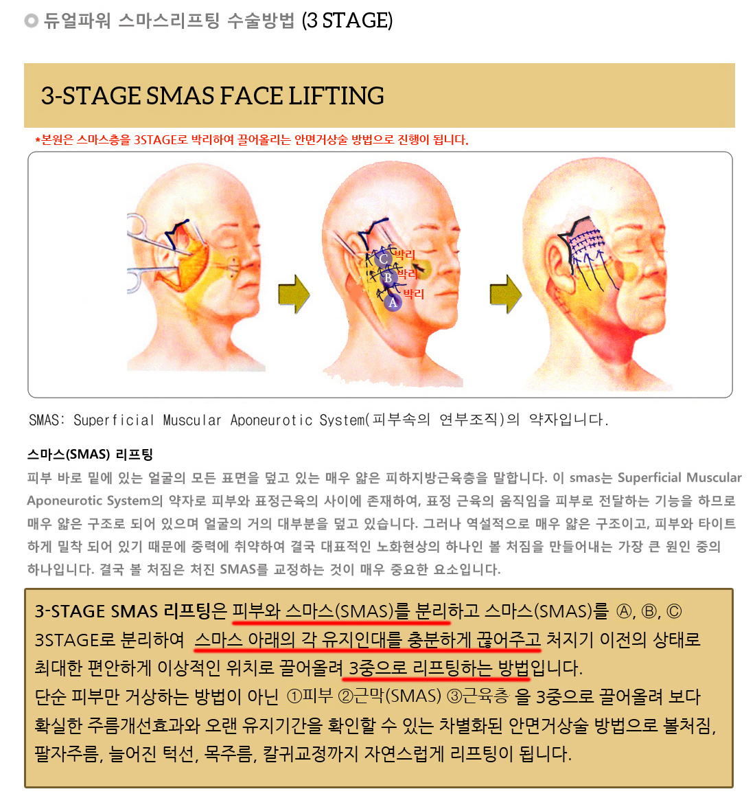 안면거상, 스마스(SMAS)와 유지인대 안면거상 수술 정말 다 똑같을까요? 안면거상수술 에 대한 관심은 많아지고 매년 그 수요가 증가하고 그리고 그에 따라 안면거상 처음 수술 만큼이나 재수술