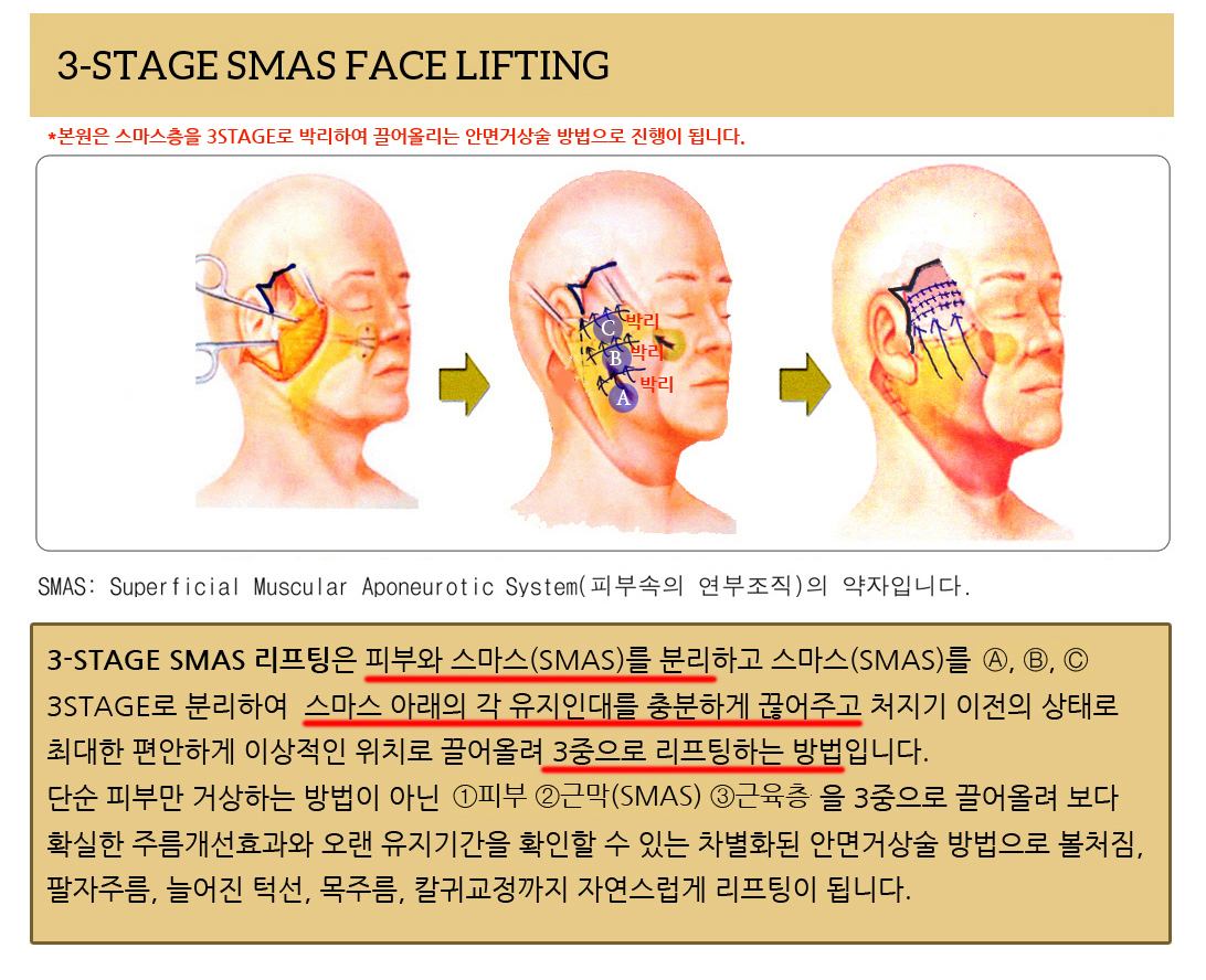 안면거상술 진행 시 스마스와 유지인대의 2STAGE,