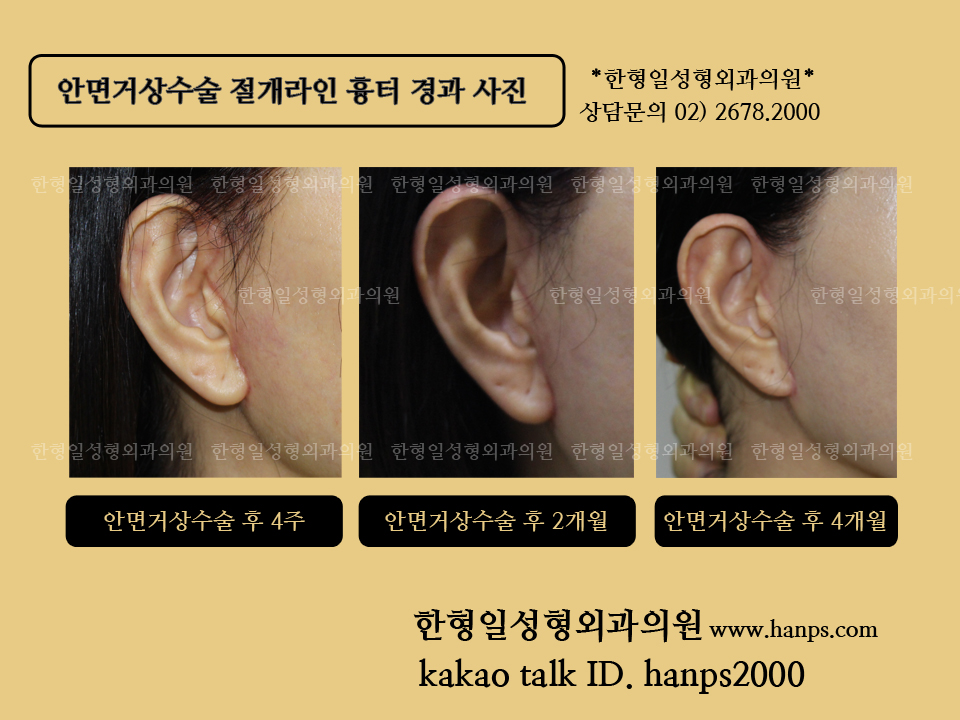 뿐 아니라 깔끔한 안면거상술 흉터와 자연스럽고 완성도 높은
